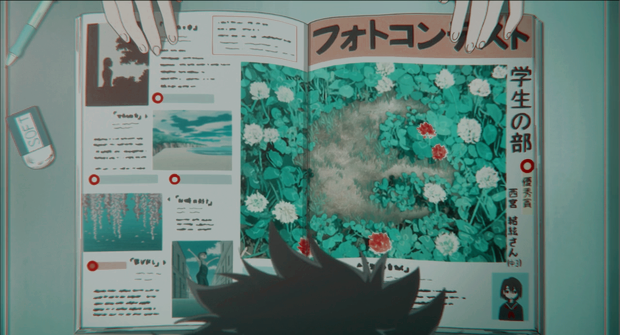 En este caso, las flores se pueden ver cuando Ishida está en el estanque, siendo ahora él quien recibe el acoso escolar de quienes eran sus amigos, cuando encuentra el antiguo cuaderno de Nishimiya, la primera parte representa la mala suerte y la relación abandonada con sus amigos, incluso hace referencia a su intento de suicidio, pero también, en el momento en que encuentra el cuaderno puede cambiar el significado como algo positivo que anticipa su futuro y como no abandona a Nishimiya cuando decide corregir los errores y el mal trato que tuvo con ella.
